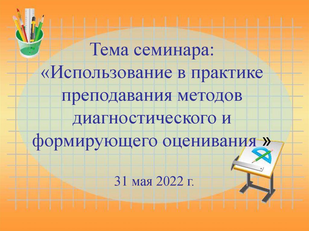 1. Тема семинара: «Использование в практике преподавания методов диагностического и формирующего оценивания »