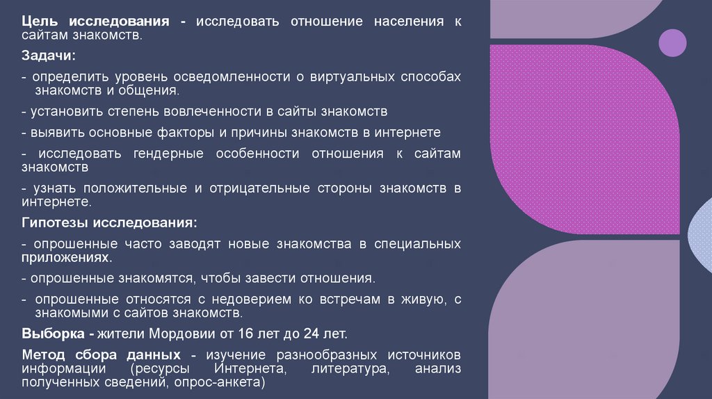Цель исследования - исследовать отношение населения ксайтам знакомств.