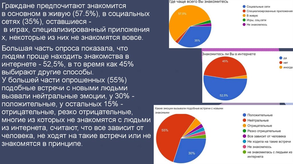 Граждане предпочитают знакомитсяв основном в живую (57.5%), в социальных