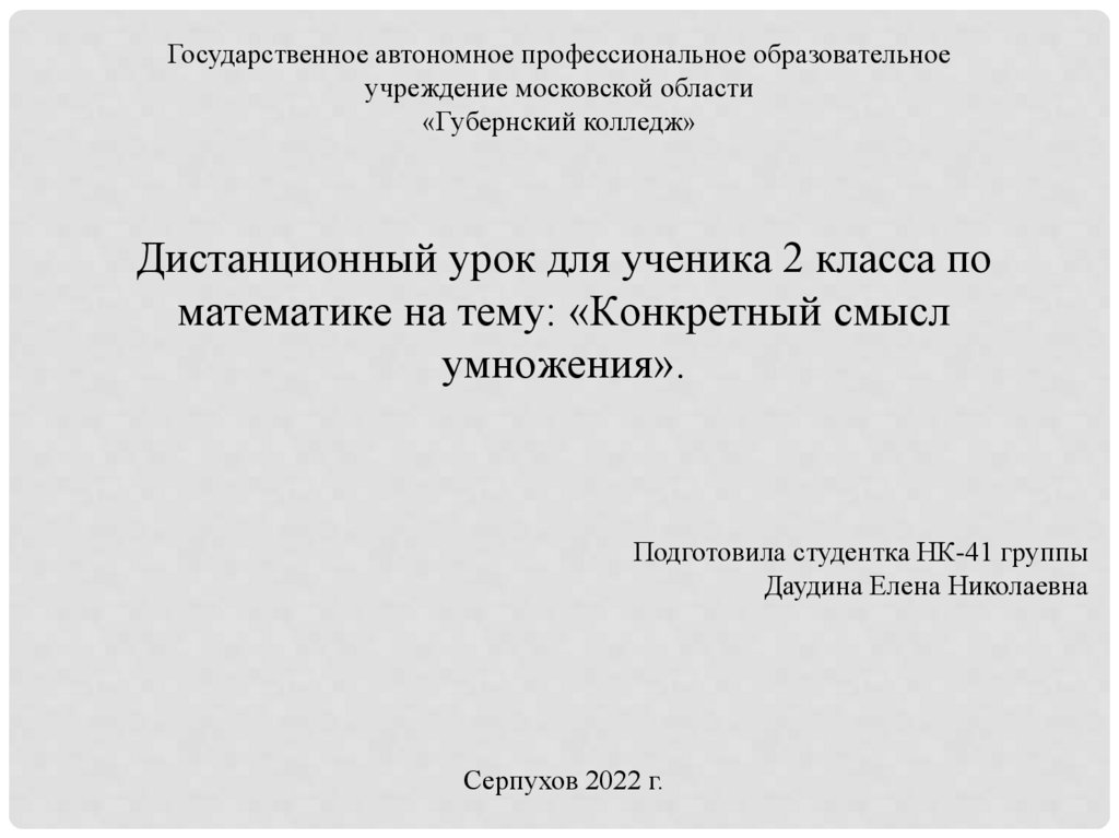 Дистанционный урок для ученика 2 класса по математике на тему: «Конкретный смысл умножения»
