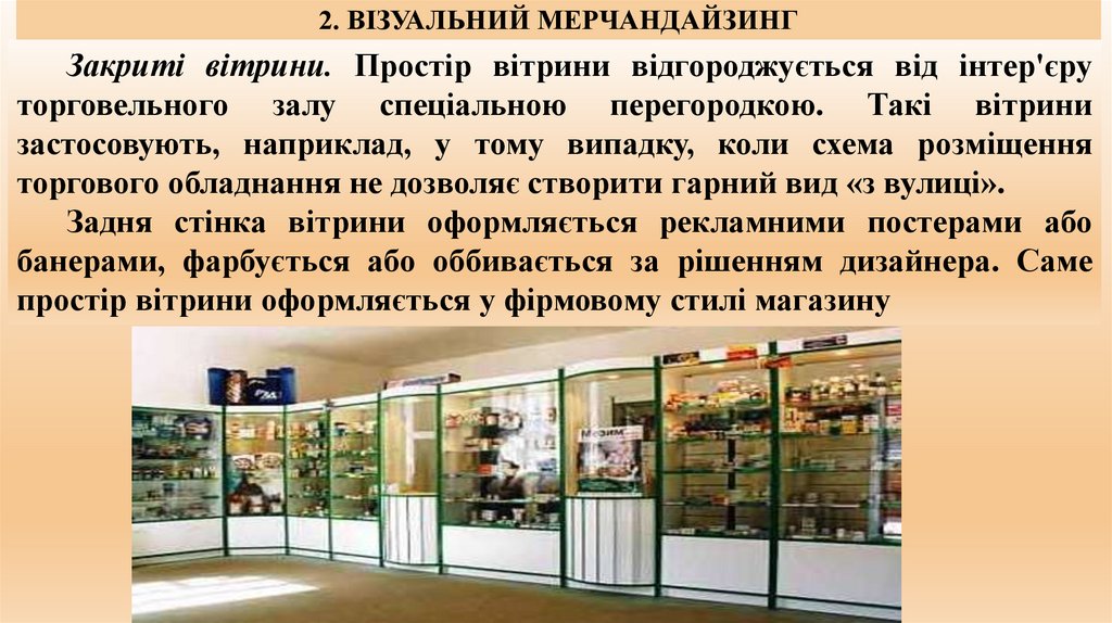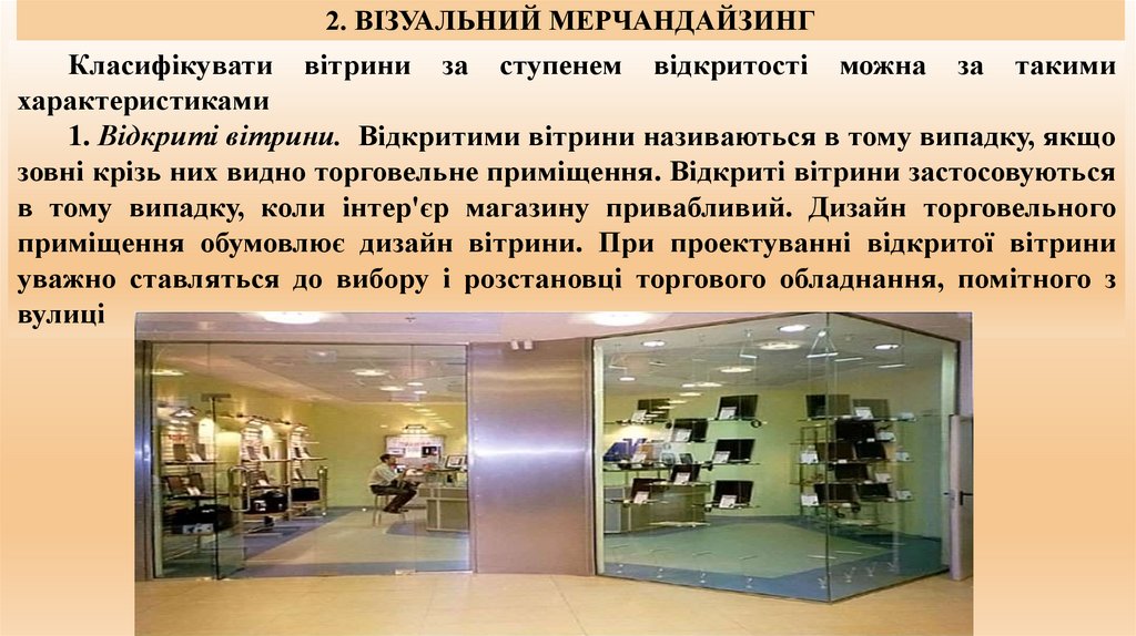 1. Відкриті вітрини. Відкритими вітрини називаються в тому випадку, якщо