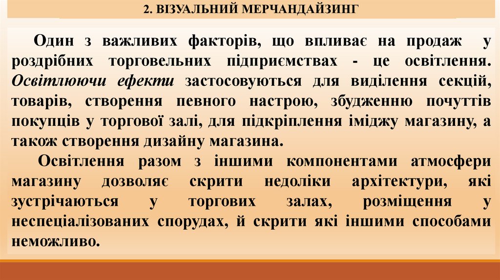 роздрібних торговельних підприємствах - це освітлення.