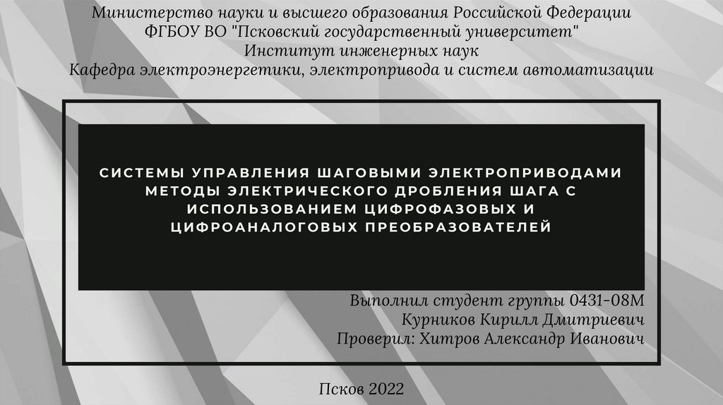 Министерство науки и высшего образования Российской ФедерацииФГБОУ ВО "Псковский государственный университет"