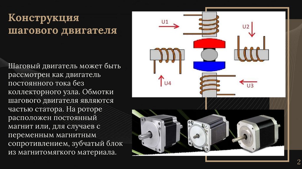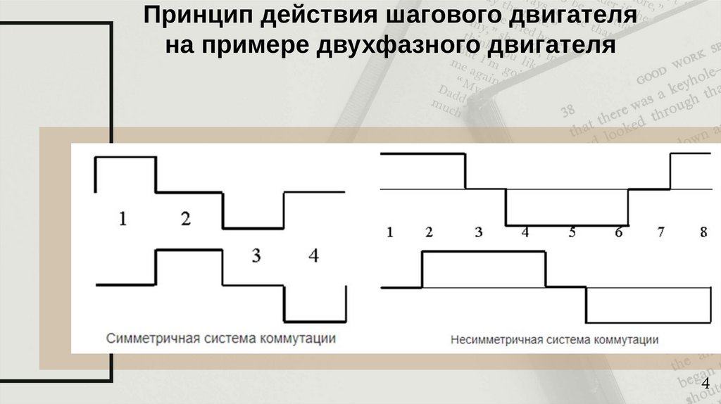 Принцип действия шагового двигателяна примере двухфазного двигателя