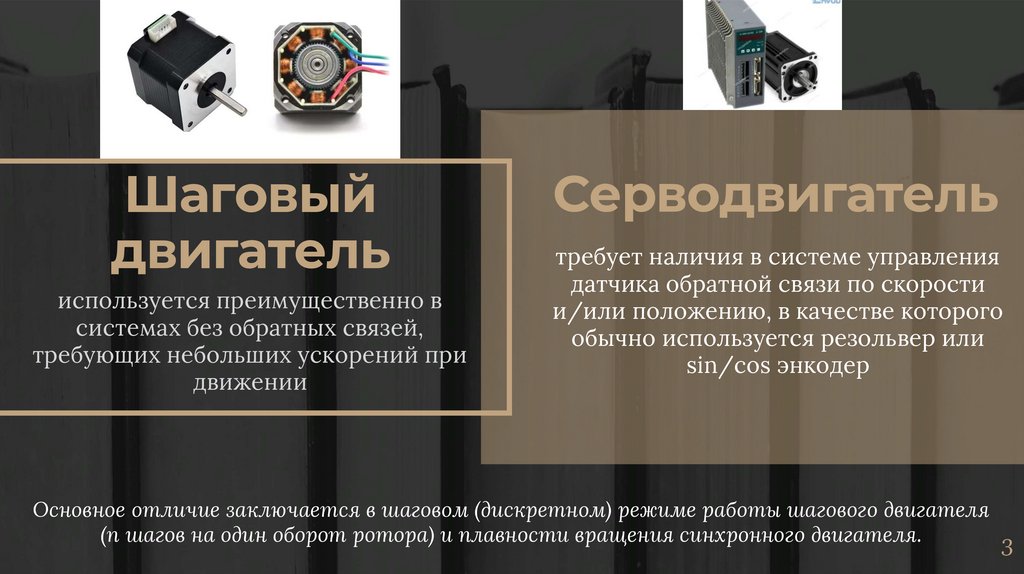 Основное отличие заключается в шаговом (дискретном) режиме работы шагового двигателя