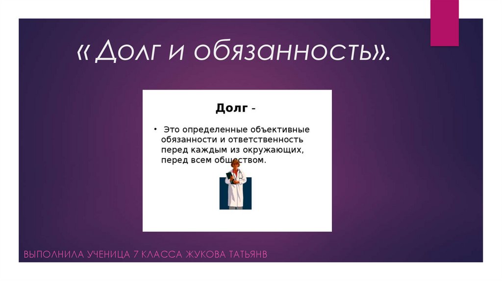 Долг — это обязательство, а также денежные средства или другиеактивы, которые кредитор передаёт заёмщику с условием их