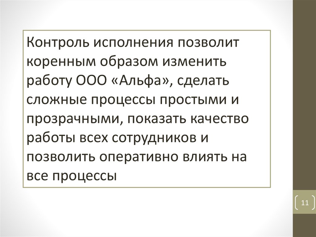 Контроль исполнения позволиткоренным образом изменить