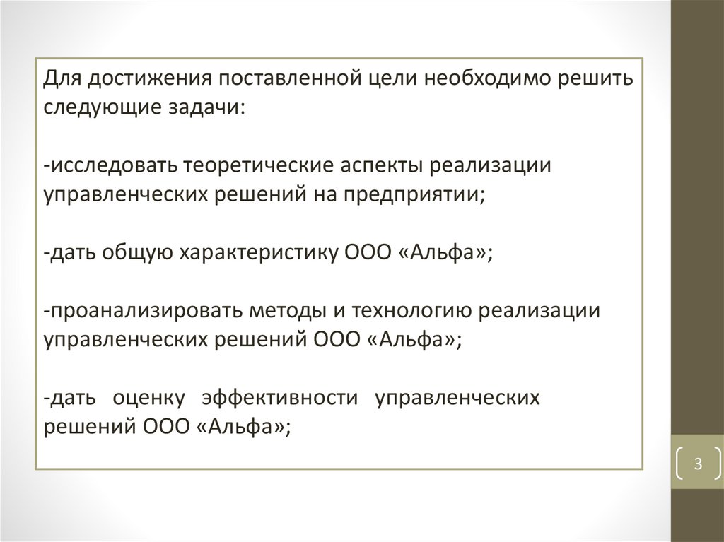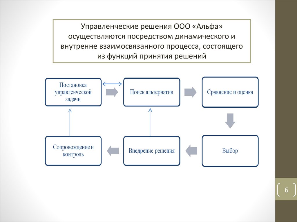 управленческих решений ООО «Альфа»;