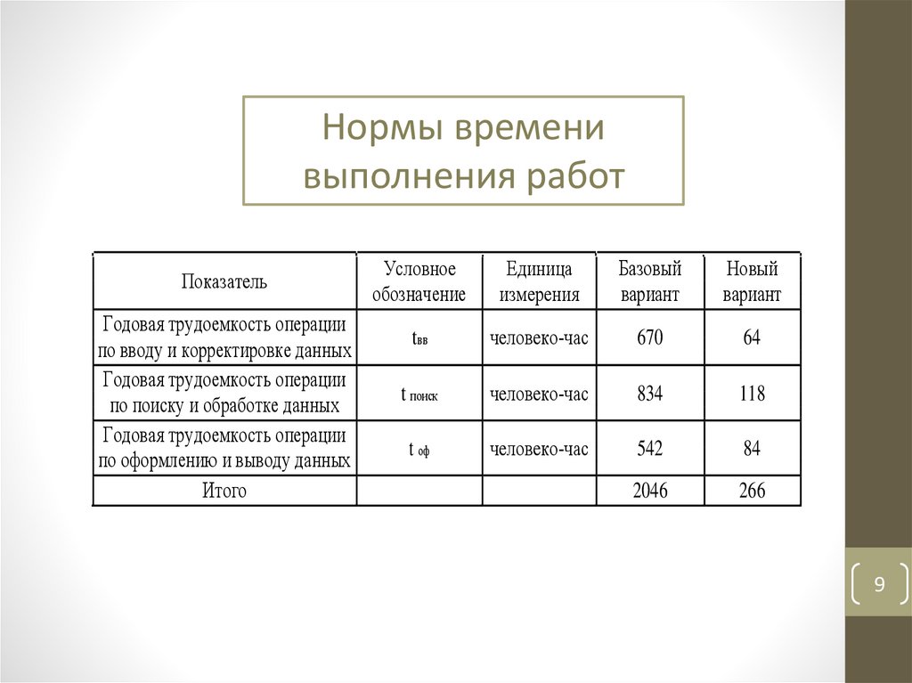 Нормы временивыполнения работ