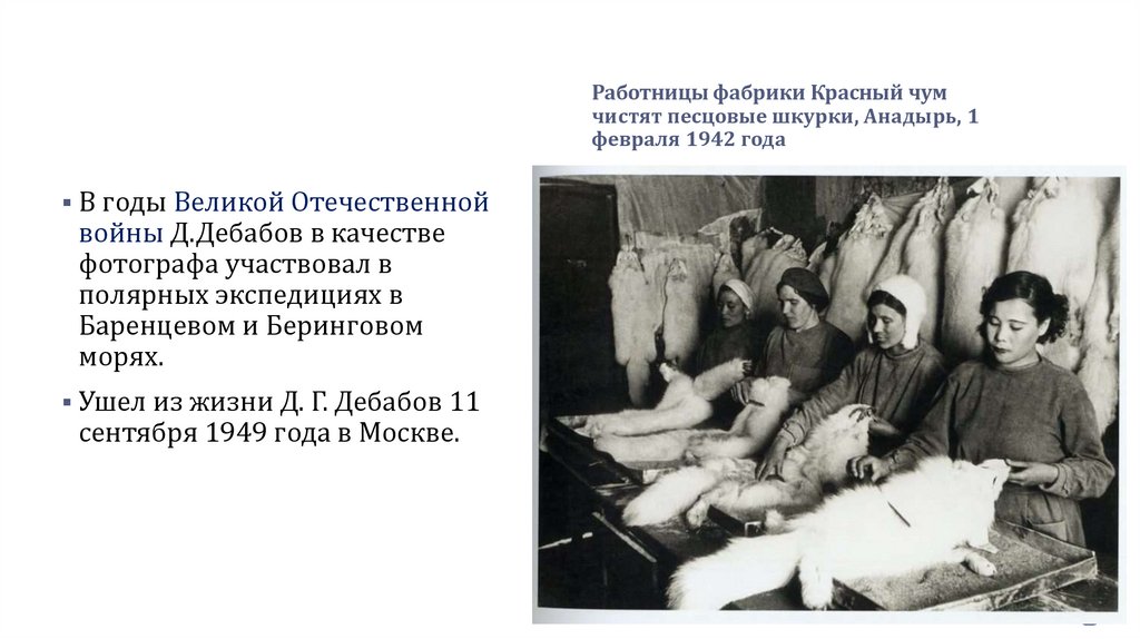 Работницы фабрики Красный чумчистят песцовые шкурки, Анадырь, 1