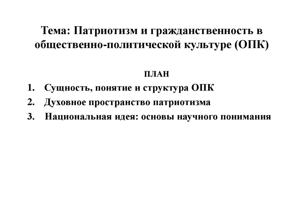 1. Тема: Патриотизм и гражданственность в общественно-политической культуре (ОПК)