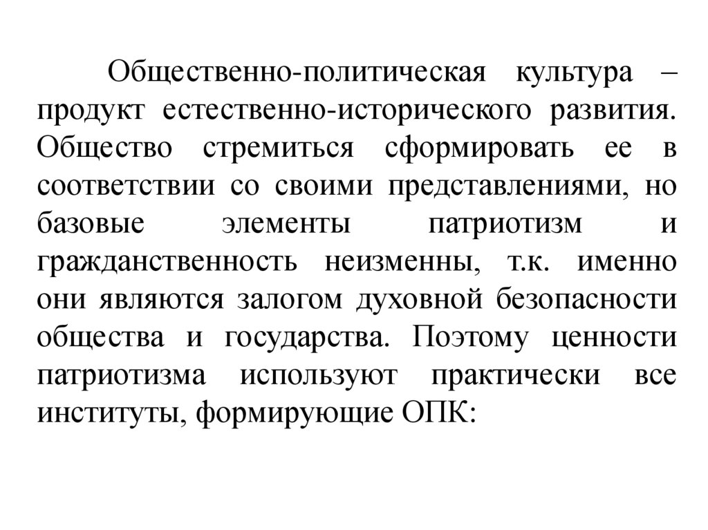 Патриотизм и гражданственность в общественно-политической культуре (ОПК)