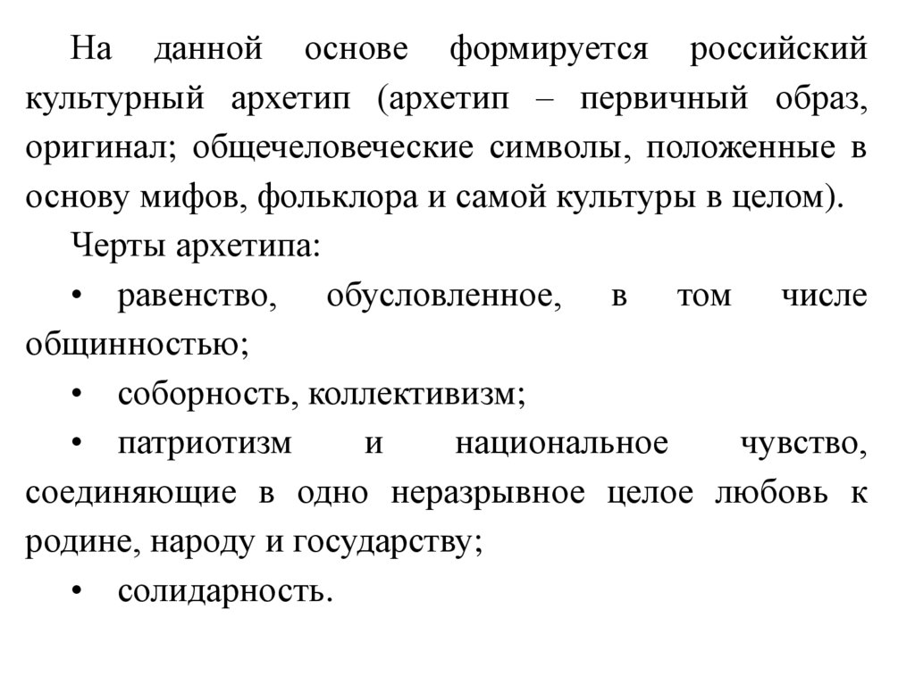 На данной основе формируется российскийкультурный архетип (архетип – первичный образ,
