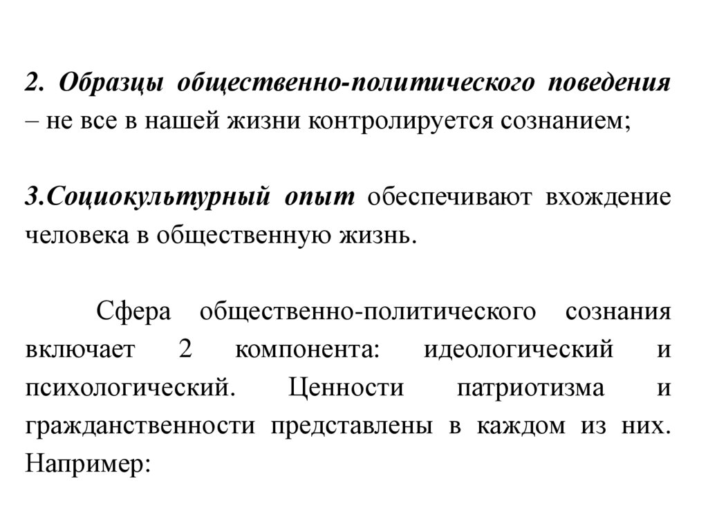 2. Образцы общественно-политического поведения– не все в нашей жизни контролируется сознанием;