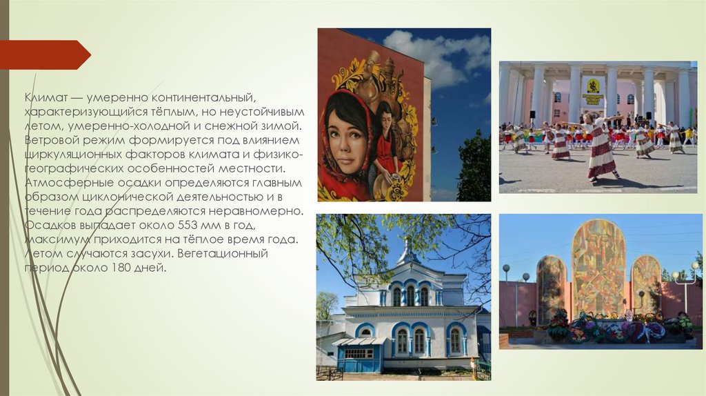 Климат — умеренно континентальный,характеризующийся тёплым, но неустойчивым