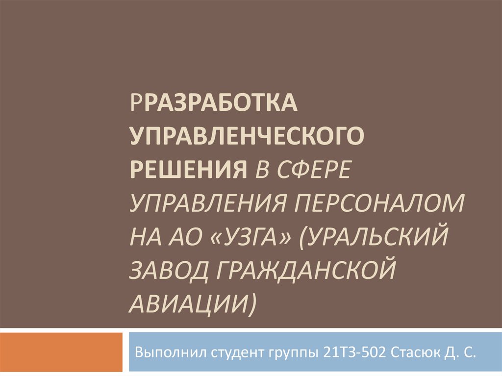 1. РРазработка управленческого решения в сфере управления персоналом на АО «УЗГА» (Уральский завод гражданской авиации)
