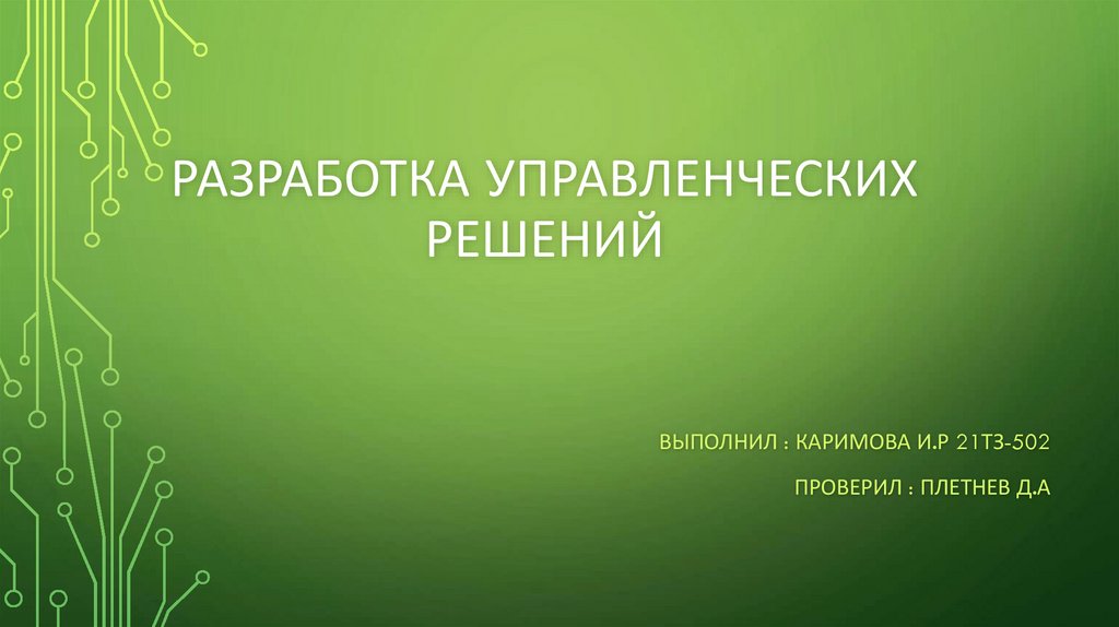 РАЗРАБОТКА УПРАВЛЕНЧЕСКИХРЕШЕНИЙ