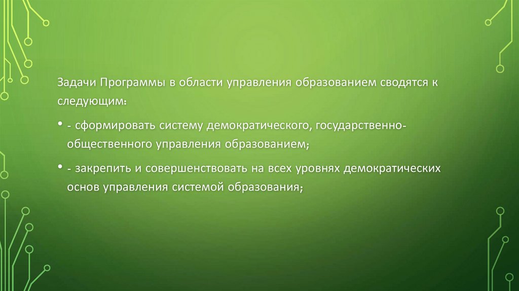 Задачи Программы в области управления образованием сводятся кследующим: