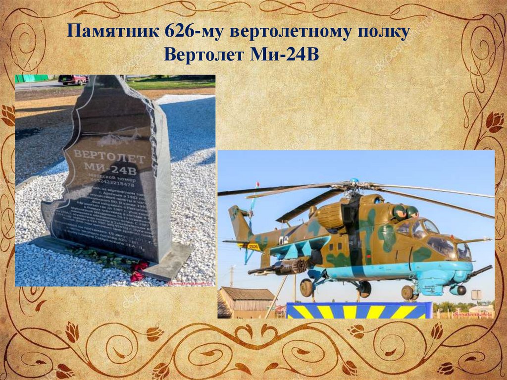 Памятник 626-му вертолетному полкуВертолет Ми-24В
