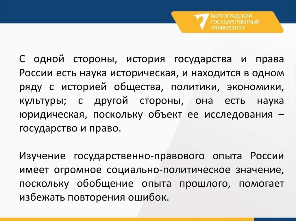 С одной стороны, история государства и праваРоссии есть наука историческая, и находится в одном