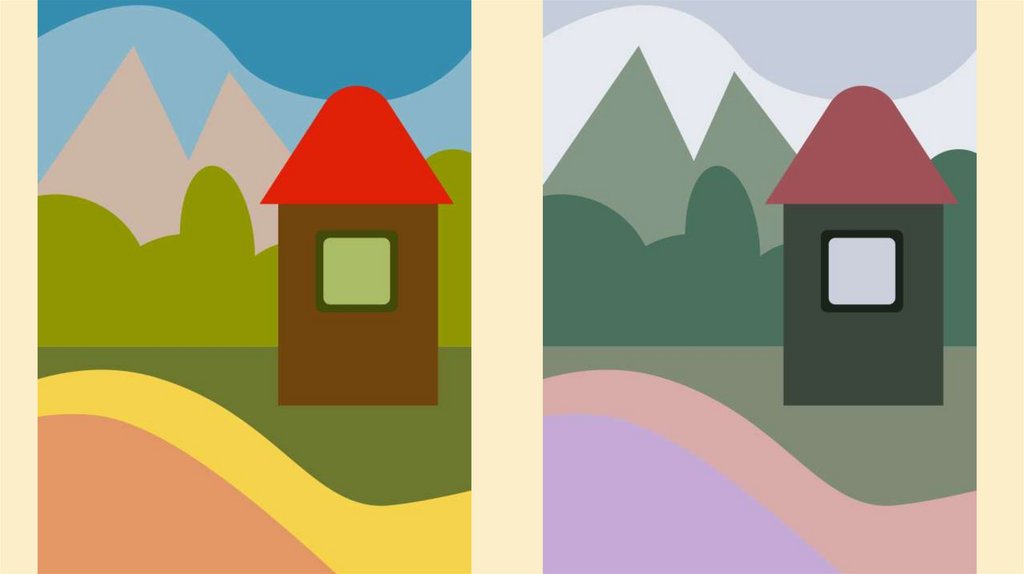 1Какой из этих пейзажей холодный, а какой теплый?