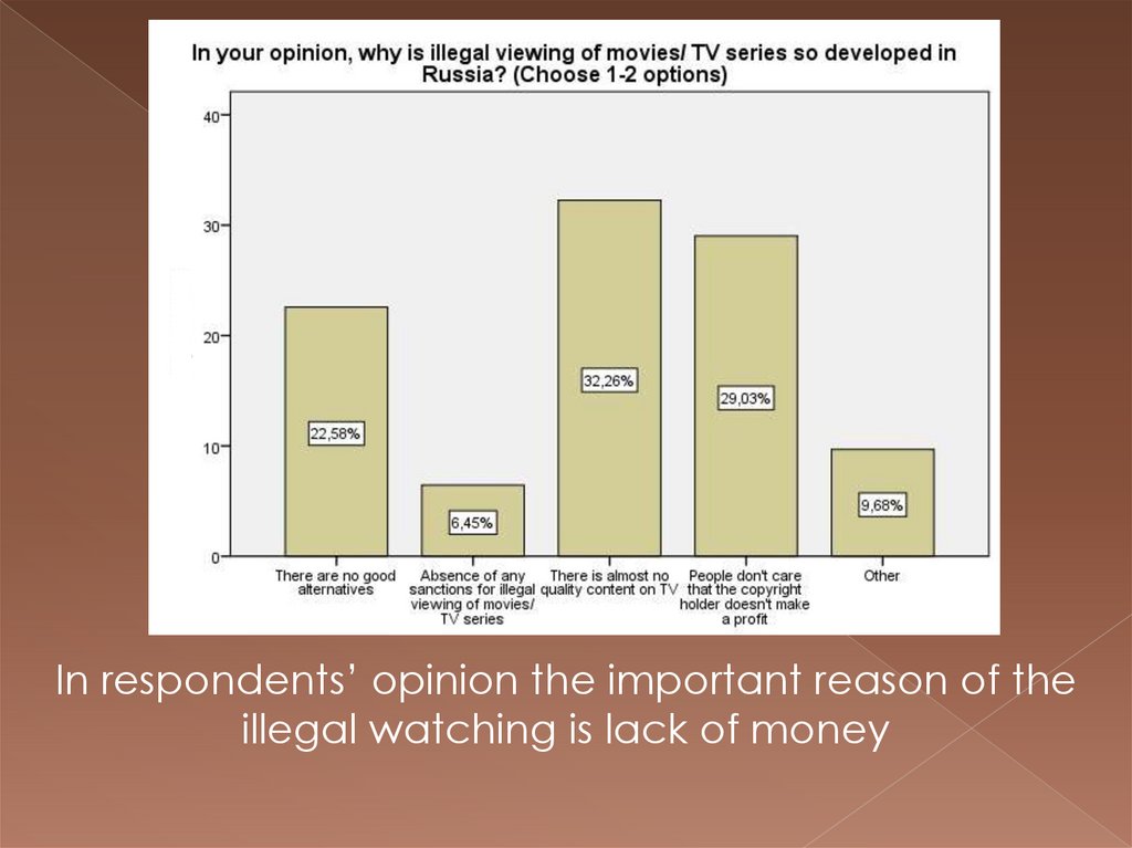 In respondents’ opinion the important reason of theillegal watching is lack of money
