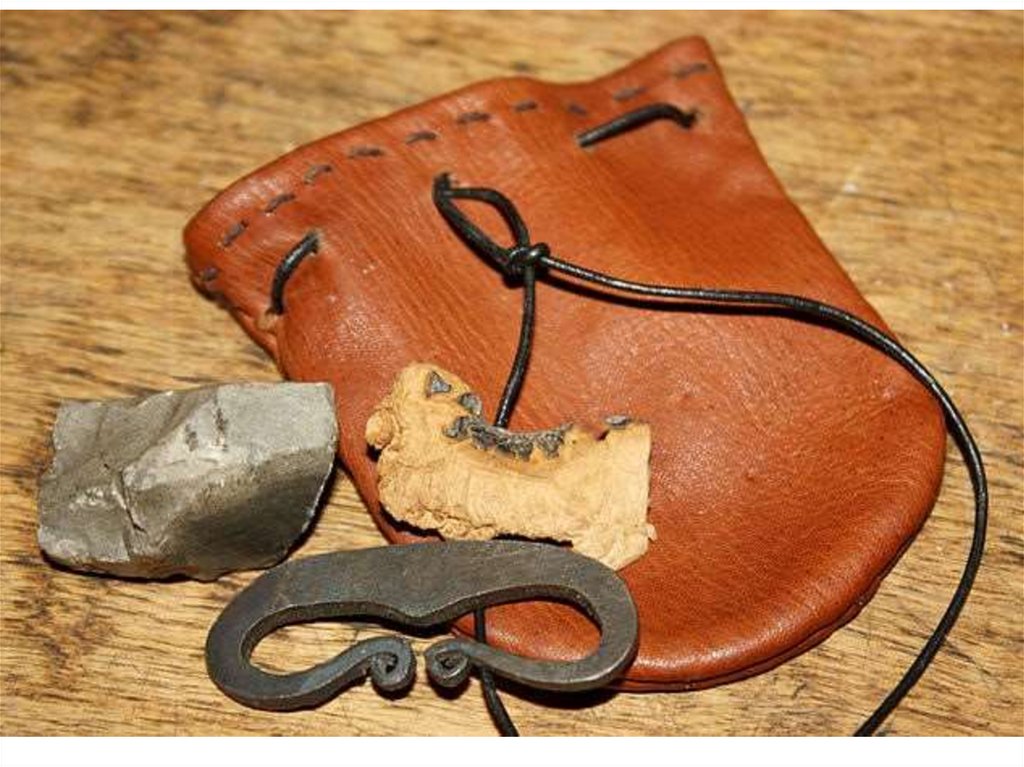1 – трутоноша; 2 – кресало; 3 – кремень; 4 — трут.