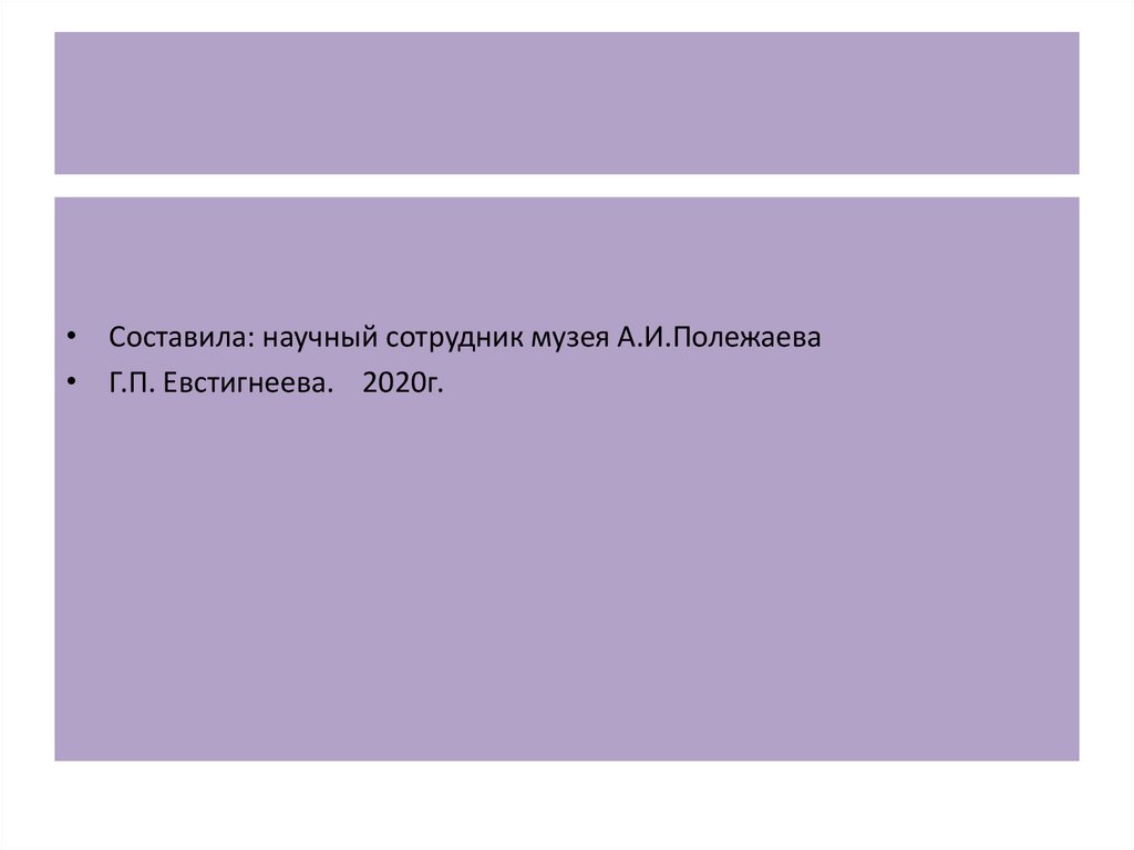 • Составила: научный сотрудник музея А.И.Полежаева• Г.П. Евстигнеева. 2020г.