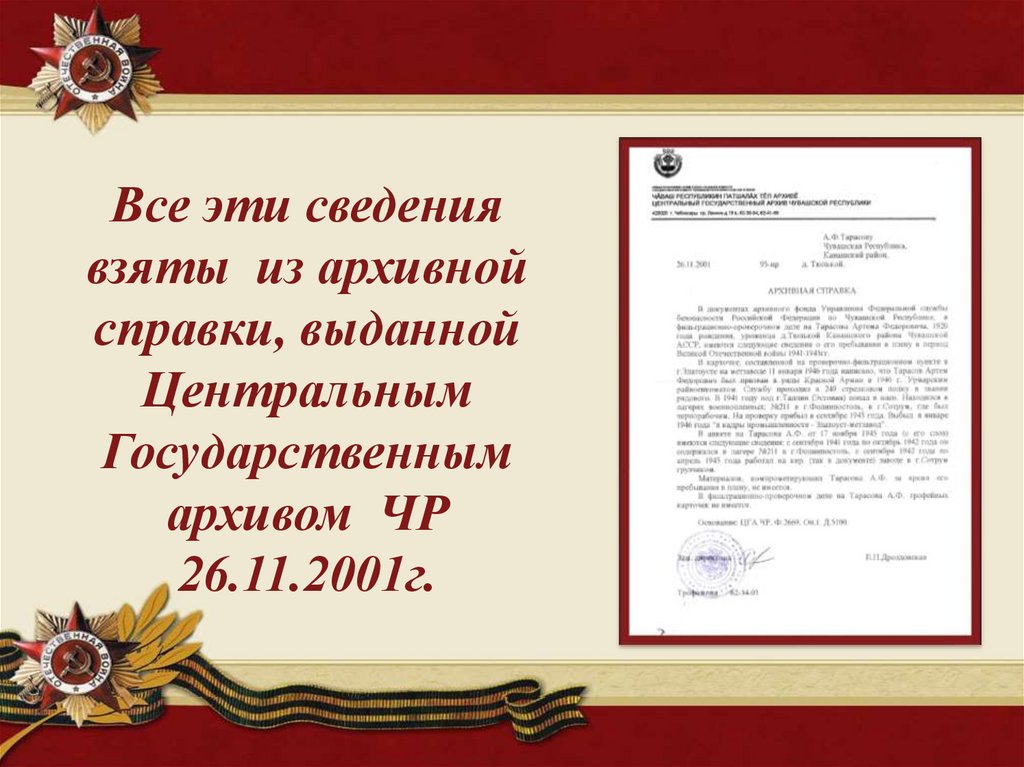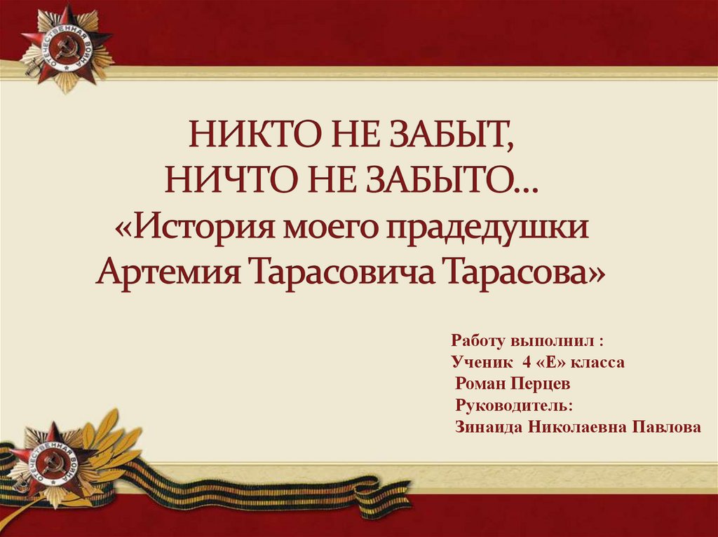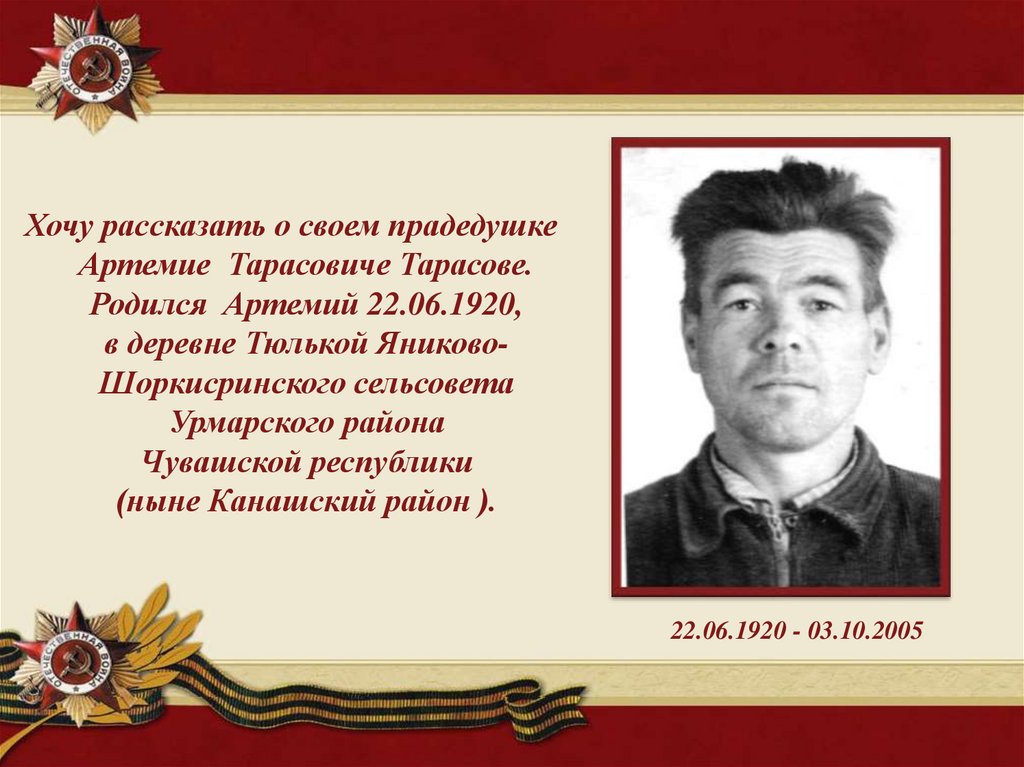 Никто не забыт, ничто не забыто… «История моего прадедушки Артемия Тарасовича Тарасова»