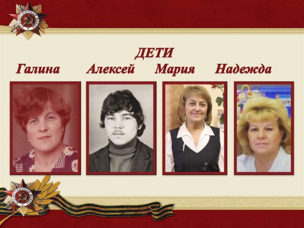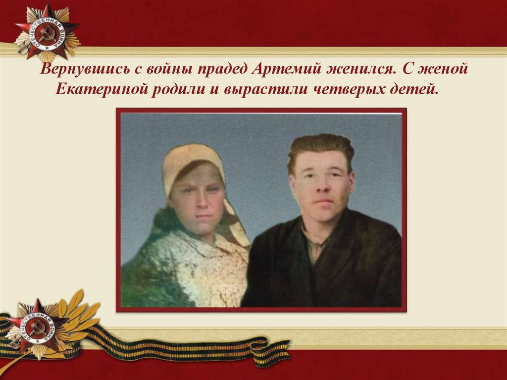 Вернувшись с войны прадед Артемий женился. С женойЕкатериной родили и вырастили четверых детей.