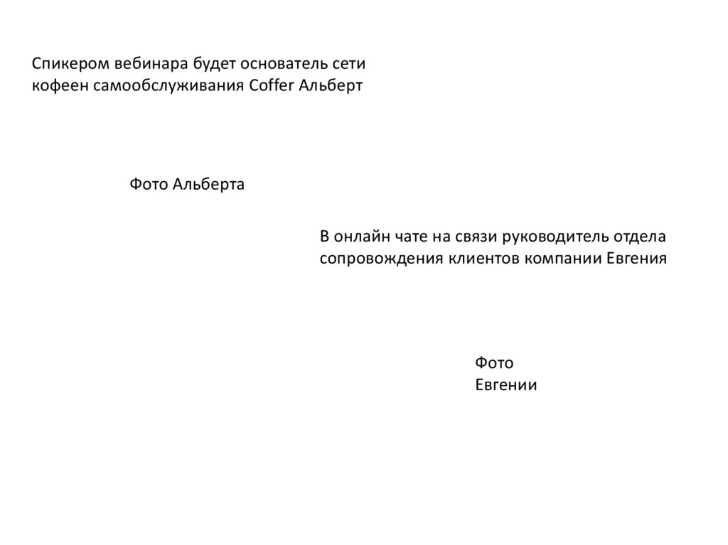 Спикером вебинара будет основатель сетикофеен самообслуживания Coffer Альберт
