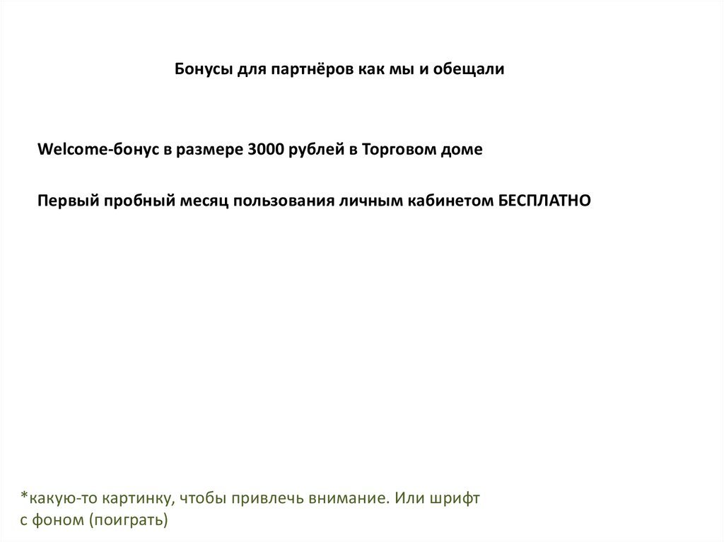 Бонусы для партнёров как мы и обещалиWelcome-бонус в размере 3000 рублей в Торговом доме