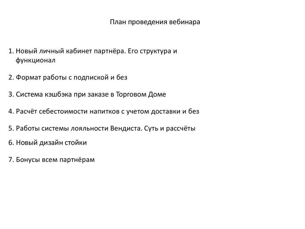 План проведения вебинара1. Новый личный кабинет партнёра. Его структура и