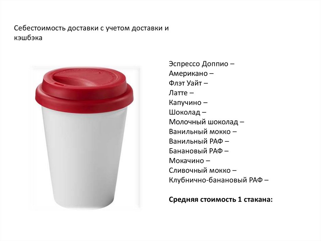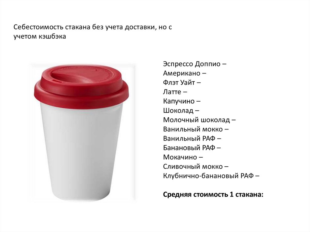 Себестоимость стакана без учета доставки, но сучетом кэшбэка