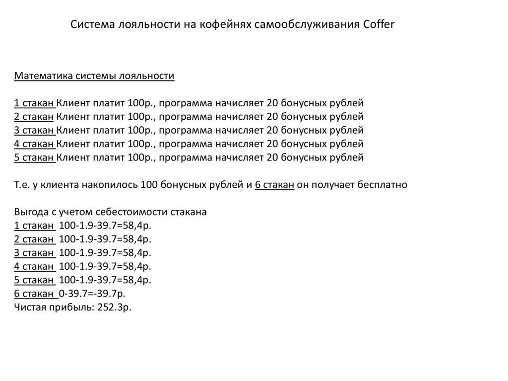 Система лояльности на кофейнях самообслуживания CofferМатематика системы лояльности