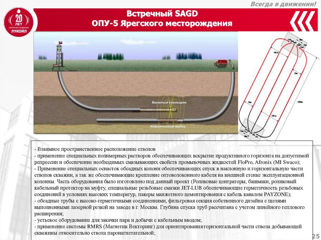 - применение системы RMRS (Магнетик Векторинг) для ориентирования горизонтальной части ствола добывающей