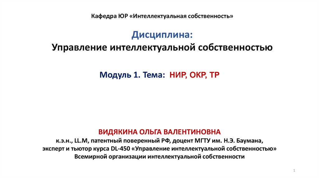 Управление интеллектуальной собственностью. НИР, ОКР, ТР. Модуль 1