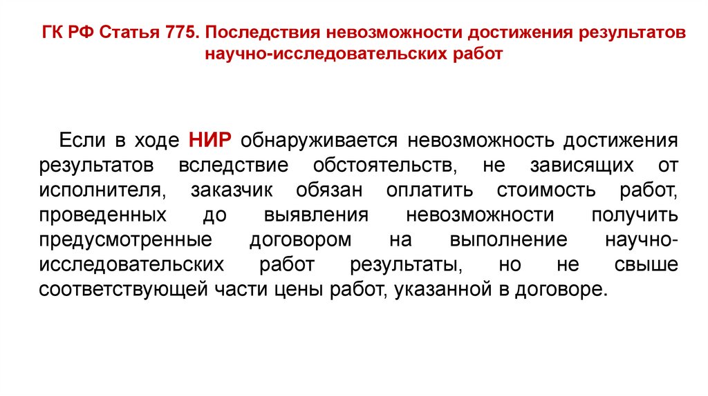 Статья 775. Последствия невозможности достижения результатов научноисследовательских работ