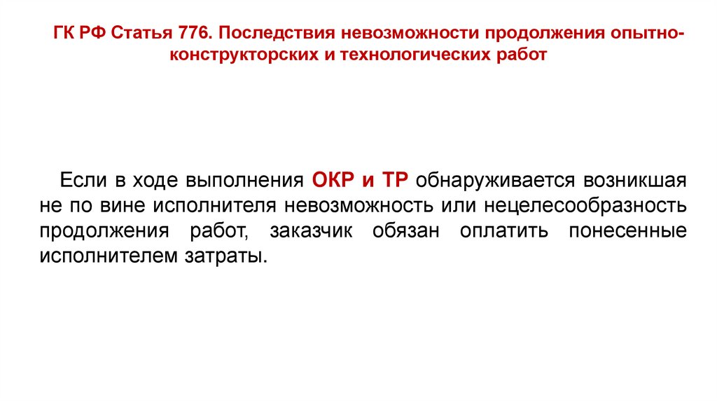 Статья 776. Последствия невозможности продолжения опытно-конструкторских и