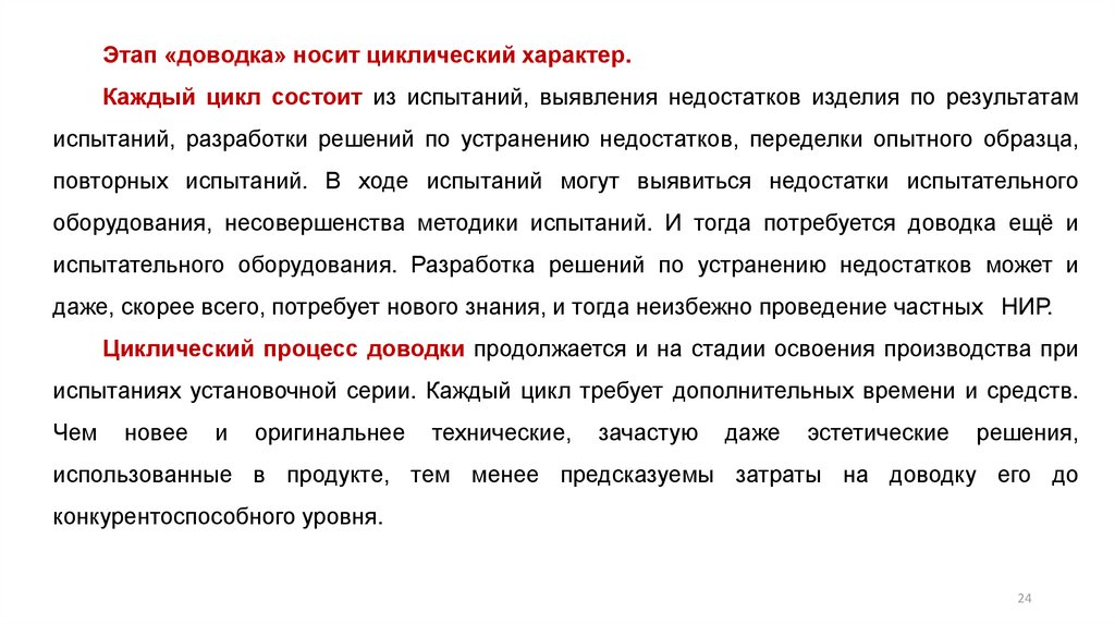 использованные в продукте, тем менее предсказуемы затраты на доводку его до