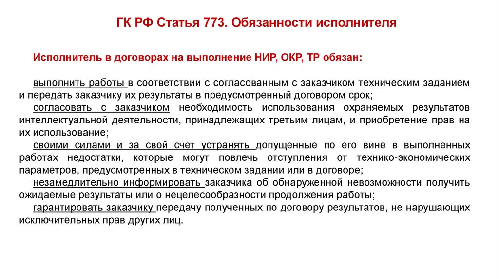 Статья 773. Обязанности исполнителя