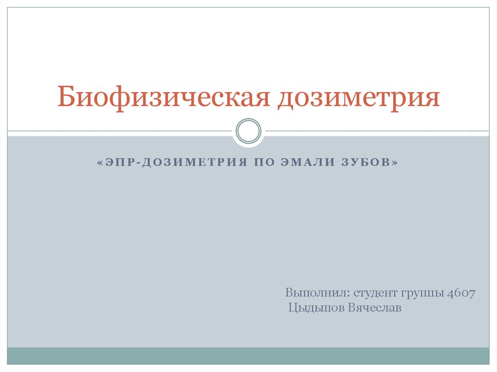 «ЭПР-ДОЗИМЕТРИЯ ПО ЭМАЛИ ЗУБОВ»Выполнил: студент группы 4607