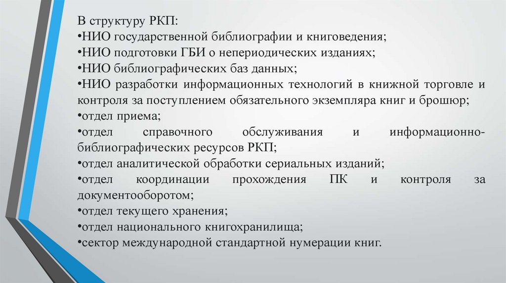 В структуру РКП:•НИО государственной библиографии и книговедения;