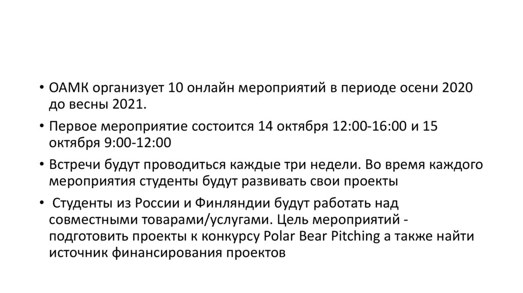 совместными товарами/услугами. Цель мероприятий подготовить проекты к конкурсу Polar Bear Pitching а также найти
