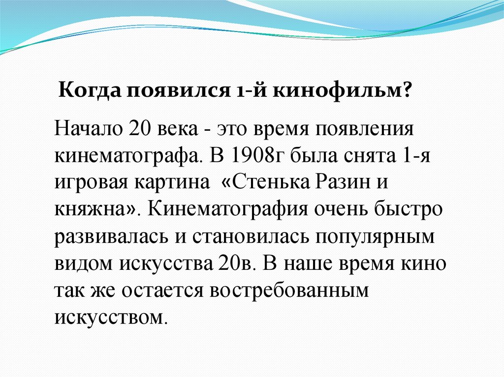 Когда появился 1-й кинофильм?Начало 20 века - это время появления