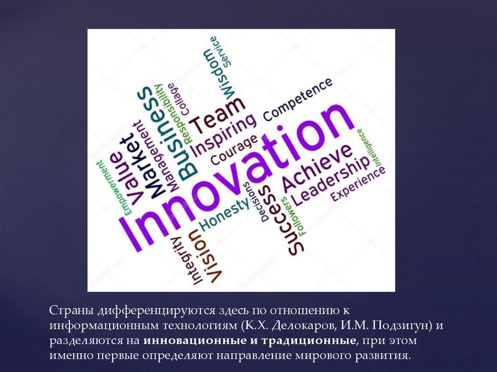 Страны дифференцируются здесь по отношению кинформационным технологиям (К.Х. Делокаров, И.М. Подзигун) и