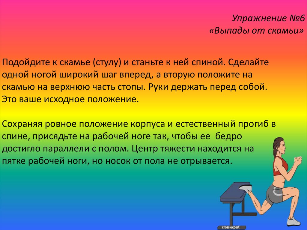 скамью на верхнюю часть стопы. Руки держать перед собой.