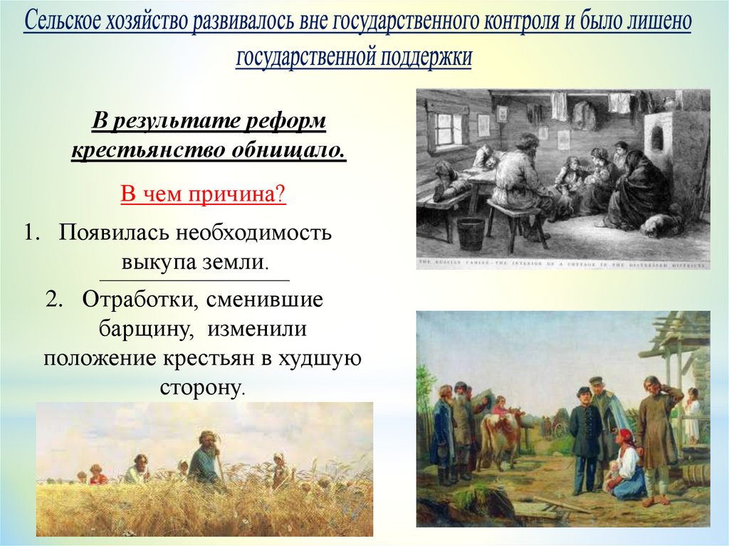 В результате реформкрестьянство обнищало.