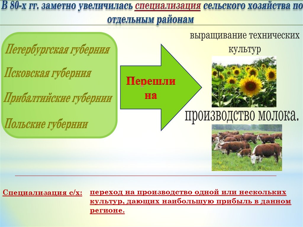 Специализация с/х:переход на производство одной или нескольких