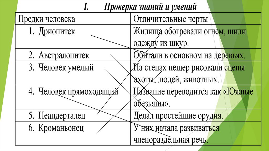 Проверка знаний и уменийПредки человека